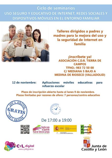 El Colectivo Tierra de Campos‬ junto a @cyldigital organizan en‪ ‎Medina de Rioseco‬ un Ciclo de seminarios sobre USO SEGURO Y EDUCATIVO DE INTERNET, REDES SOCIALES Y DISPOSITIVOS MÓVILES EN EL ENTORNO FAMILIAR, dirigidos a padres y madres para la mejora del uso y la seguridad de Internet en familia.