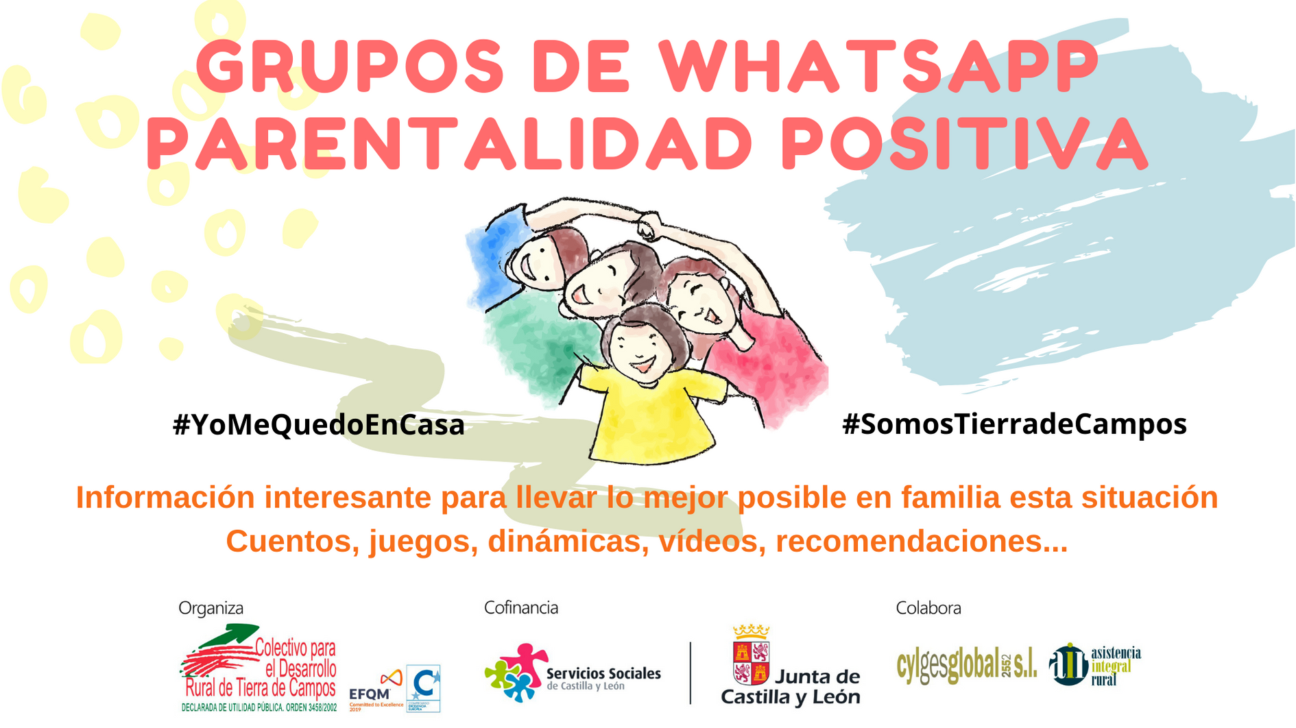 «A pesar de la cuarenta y de no poder acudir a los diferentes pueblos a impartir nuestras actividades, desde Colectivo Tierra de Campos continuamos trabajando con las familias. Para ello, hemos creado grupos de WhatsApp por cada municipio al que acudimos, en el cual estamos compartiendo diversos recursos para facilitar que las familias se relacionen de una forma positiva y puedan llevar está situación de confinamiento de la mejor manera posible.»