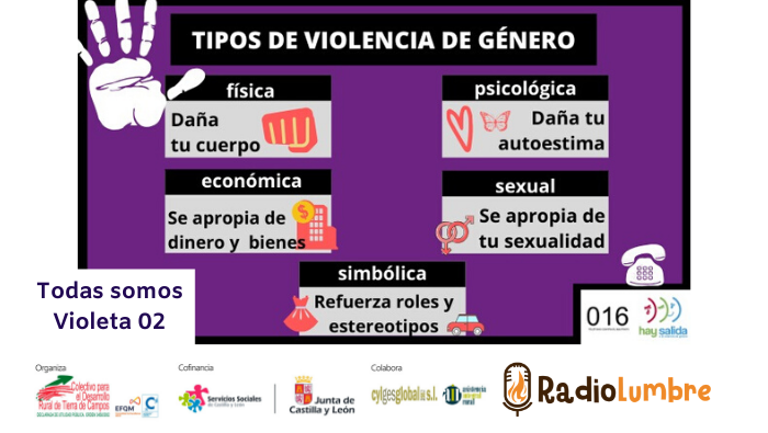Desde nuestro programa “Todas Somos Violeta” continuamos visibilizando lo que supone para nuestra sociedad la violencia de género. Hoy queremos mostraros los distintos tipos de violencia que sufren las mujeres víctimas de violencia machista.