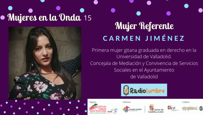 En el Podcast de hoy en Mujeres en la Onda podrás escuchar la entrevista realizada a Carmen Jiménez, la primera mujer gitana graduada en derecho en la Universidad de Valladolid y concejala de mediación y convivencia de servicios sociales en el Ayuntamiento de Valladolid.