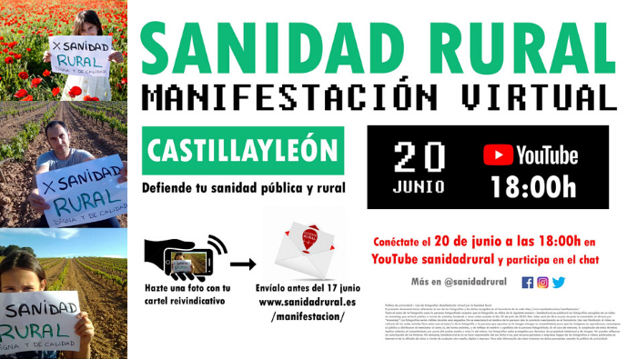 La plataforma por una Sanidad Rural Digna y de Calidad en Castilla y León lanza un llamamiento a toda la sociedad para participar en una manifestación virtual el próximo 20 de junio de 2020 a través de YouTube.
