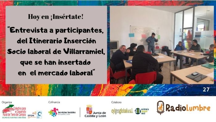 “Hoy en ¡Insértate! entrevistamos a tres personas participantes del Itinerario de Inserción Sociolaboral realizado en Villarramiel por el Colectivo Tierra de Campos, que nos cuentan su experiencia en el itinerario y cómo gracias a dicho itinerario encontraron trabajo.”