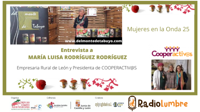En el Podcast de hoy en Mujeres en la Onda podrás escuchar la entrevista realizada a María Luisa Rodríguez Rodríguez, Empresaria que, junto a sus cuatro compañeras, han creado una empresa de Economía Social para la transformación de productos agroalimentarios en Tabuyo del Monte, cuentan con tienen una tienda online para vender sus productos y un restaurante donde poder disfrutar de la cocina de productos de la zona.