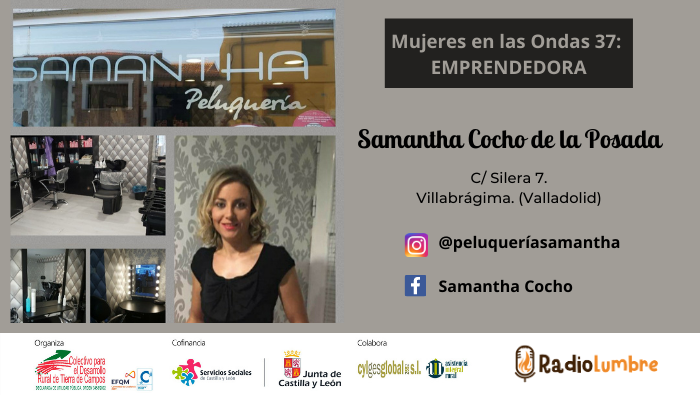 En el programa de hoy os traemos el testimonio de una mujer, joven, que con 20 años decidió emprender en su pueblo y que, 13 años después sigue ingeniándoselas para que su peluquería siga funcionando. Su nombre es Samantha Cocho de la Posada, y tiene su peluquería en Villabrágima, un pueblo de Valladolid.