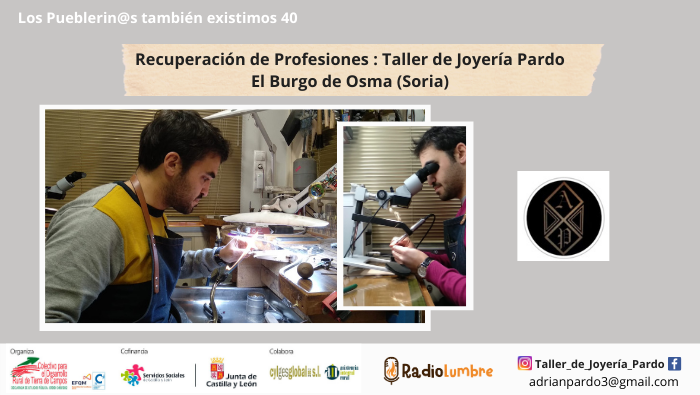 En el programa de hoy y siguiendo con la recuperación de profesiones, contamos con el testimonio de ADRIAN PARDO OLIVA, joven artesano que ha encontrado su lugar arreglando, y sobre todo, creando diferentes tipos de joyas en el taller que tiene en El Burgo de Osma, Soria.