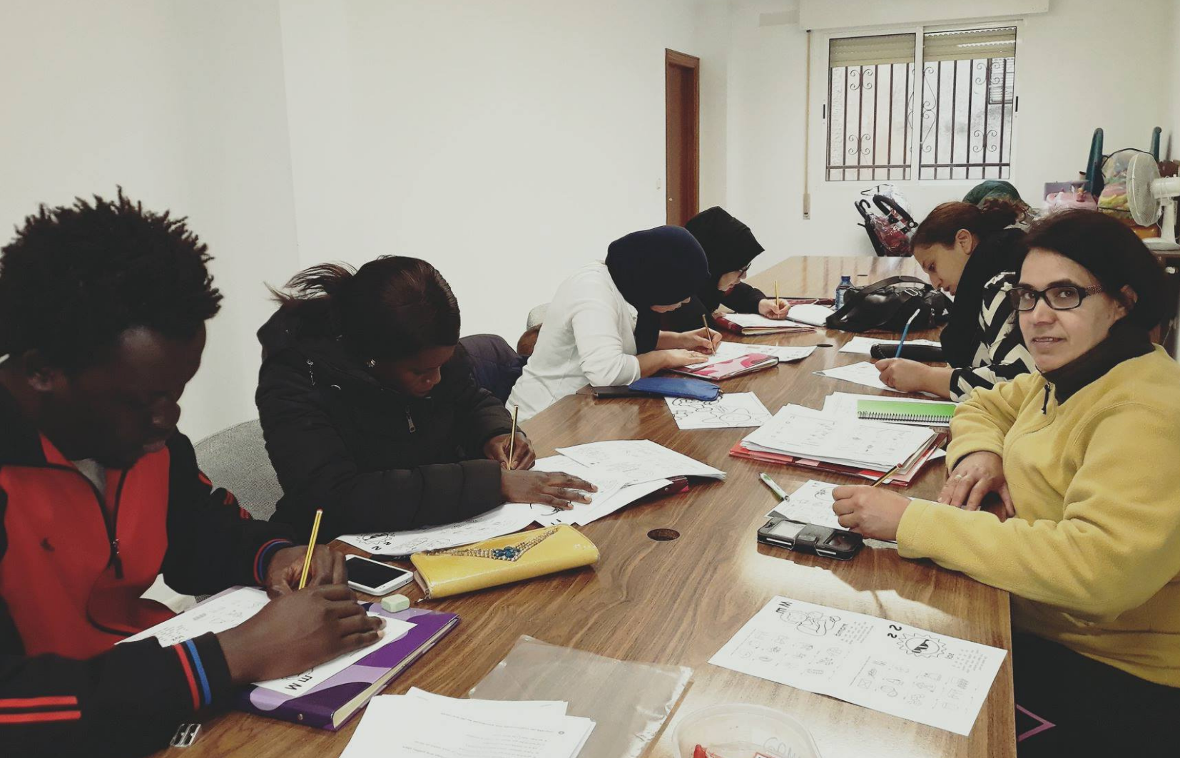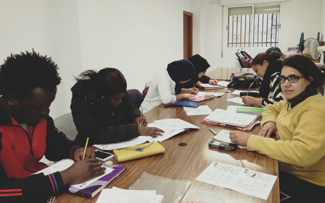 Fotografía: Participantes en el programa de alfabetización dirigido a la población inmigrante desarrollado por el Colectivo para el Desarrollo Rural de Tierra de Campos