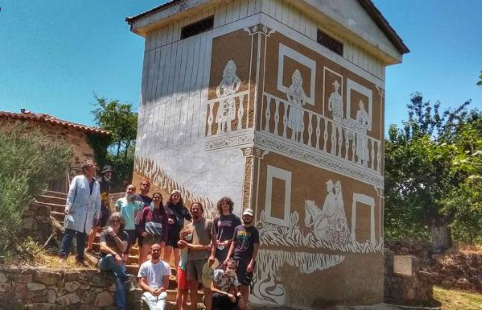 Para realizar esta intervención, prosigue Luis Puga, han utilizado la técnica del esgrafiado encalado, de gran tradición en la provincia de Salamanca, que se realiza con mortero de cal y pintura a la cal. «Los albañiles contratados por el Ayuntamiento han preparado el soporte y sobre eso nosotros hemos realizado el diseño con los dibujos» que ahora se pueden ver.