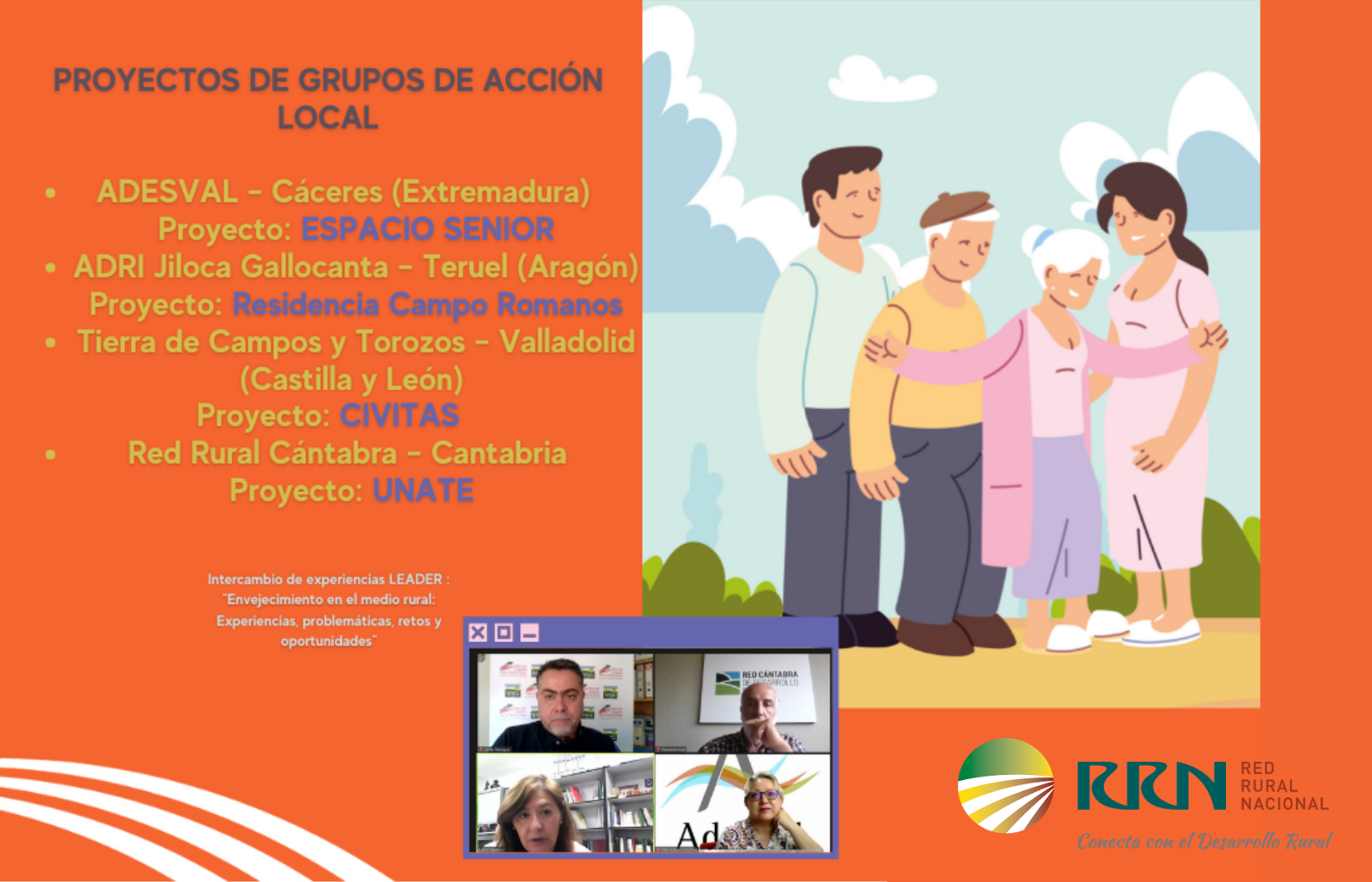 Otro de los proyectos incluidos en esta jornada fue CIVITAS, un proyecto de innovación social en el medio rural, coordinado por el GAL Colectivo para el Desarrollo Rural de Tierra de Campos, en Castilla y León, que pretende construir un puente entre los mayores del medio rural y aquellas personas desempleadas del territorio que buscan empleo en el ámbito de la atención sociosanitaria. Por último, la Red Cántabra de Desarrollo Rural Cantabria presentó el convenio de colaboración que tiene firmado con la Universidad Permanente, UNATE, como apuesta común para generar alianzas y proyectos a favor de la población mayor de la región para un envejecimiento activo y saludable. Entre ellos, se incluyen programas formativos, turismo sostenible, conferencias, talleres y otros programas culturales y sociales.