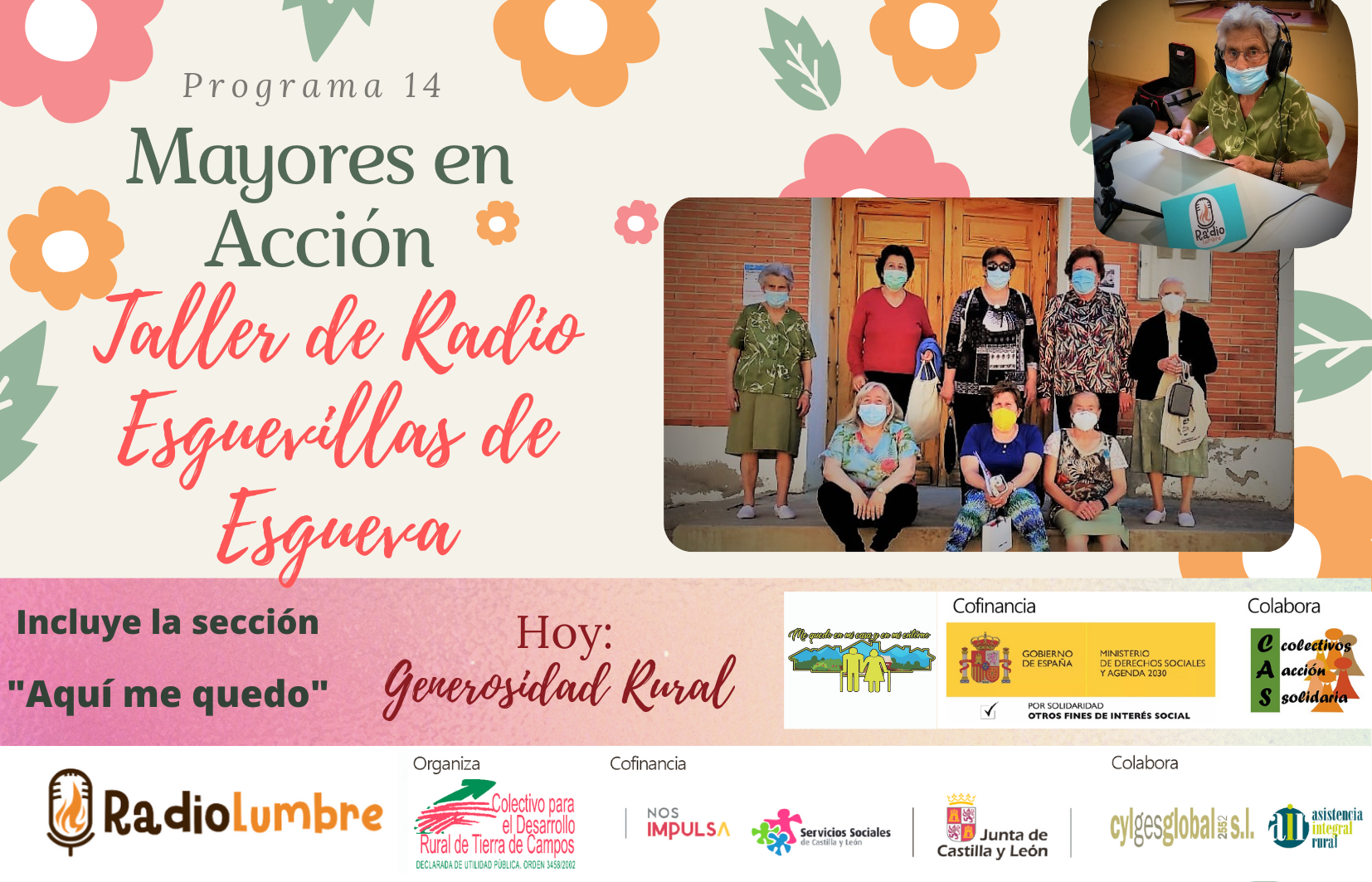 Nos adentramos en el Valle de Esgueva y hacemos parada en uno de sus pueblos, Esguevillas de Esgueva. Aquí, un grupo de mujeres nos contarán cosas muy interesantes sobre cómo trabajaron en el campo, cómo vivieron la pandemia durante el año pasado o nos contarán momentos importantes de sus vidas. Todo ello hecho con mucho cariño. ¡Ya sabéis, no podéis perderos este programa!