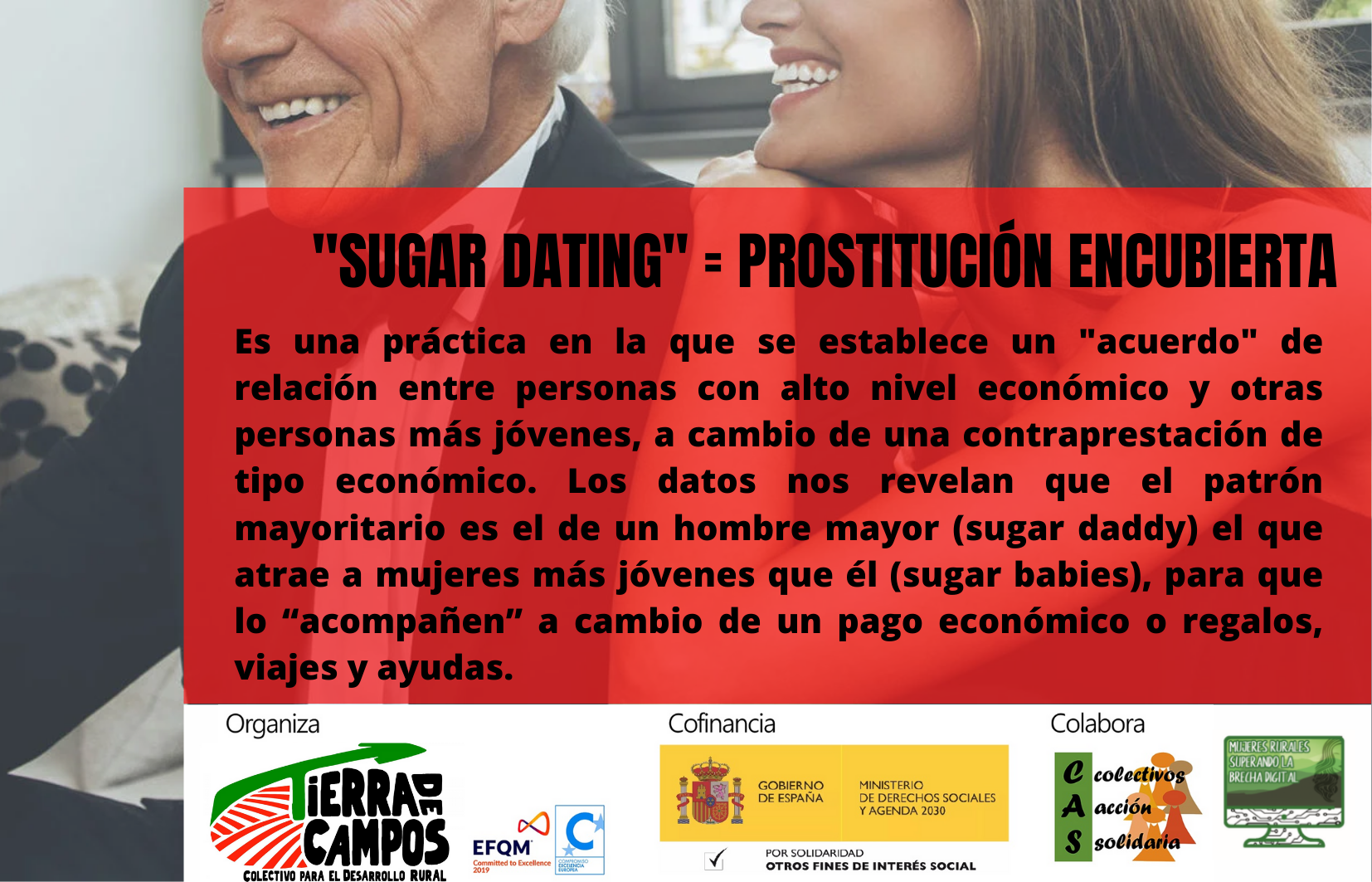 ¿Qué es el “sugar dating? Es una práctica en la que se establece un «acuerdo» de relación entre personas con alto nivel económico y otras personas más jóvenes, a cambio de una contraprestación de tipo económico. Los datos nos revelan que el patrón mayoritario es el de un hombre mayor (sugar daddy) que atrae a mujeres más jóvenes que él (sugar babies), para que lo “acompañen” a cambio de un pago económico o regalos, viajes y ayudas. La forma de conocerse y contactar es sencilla: Internet y las distintas aplicaciones de la Red para ligar. Uno de los problemas, es que esta forma de prostitución encubierta es accesible para las menores de 18 años, normalizando las relaciones llamadas “compensadas” y sexistas basadas en la concepción de la mujer como un objeto de comercio de los hombres.