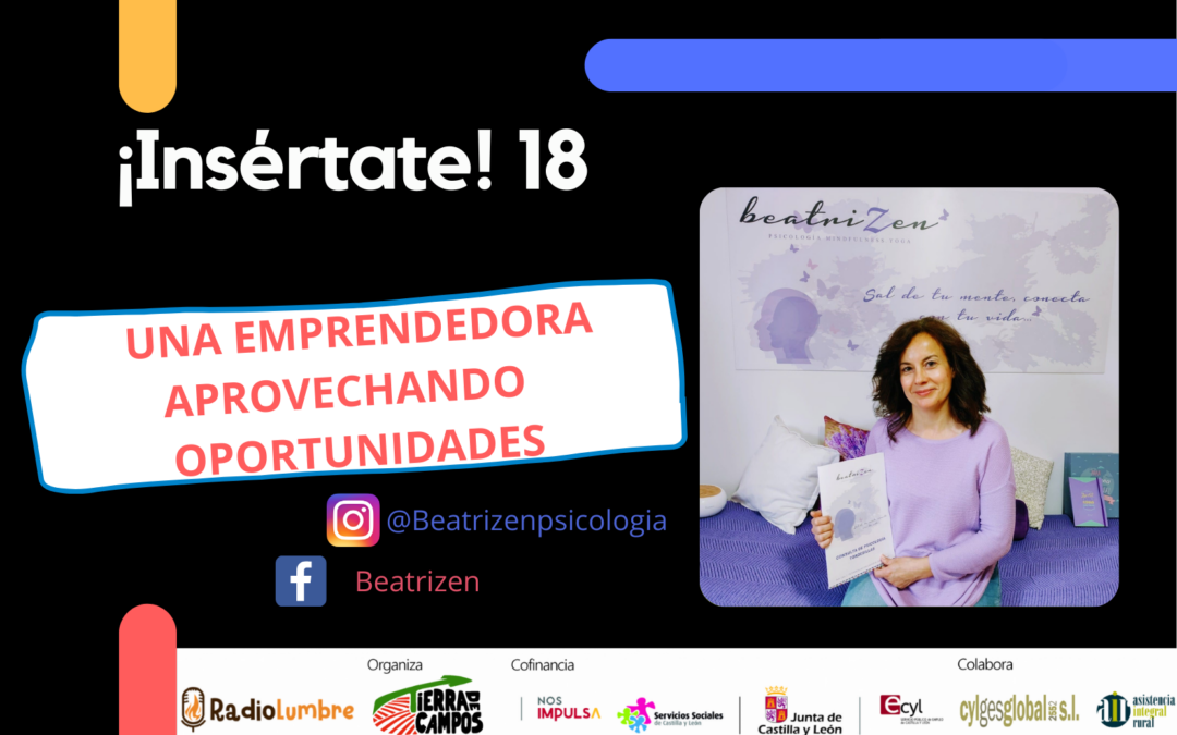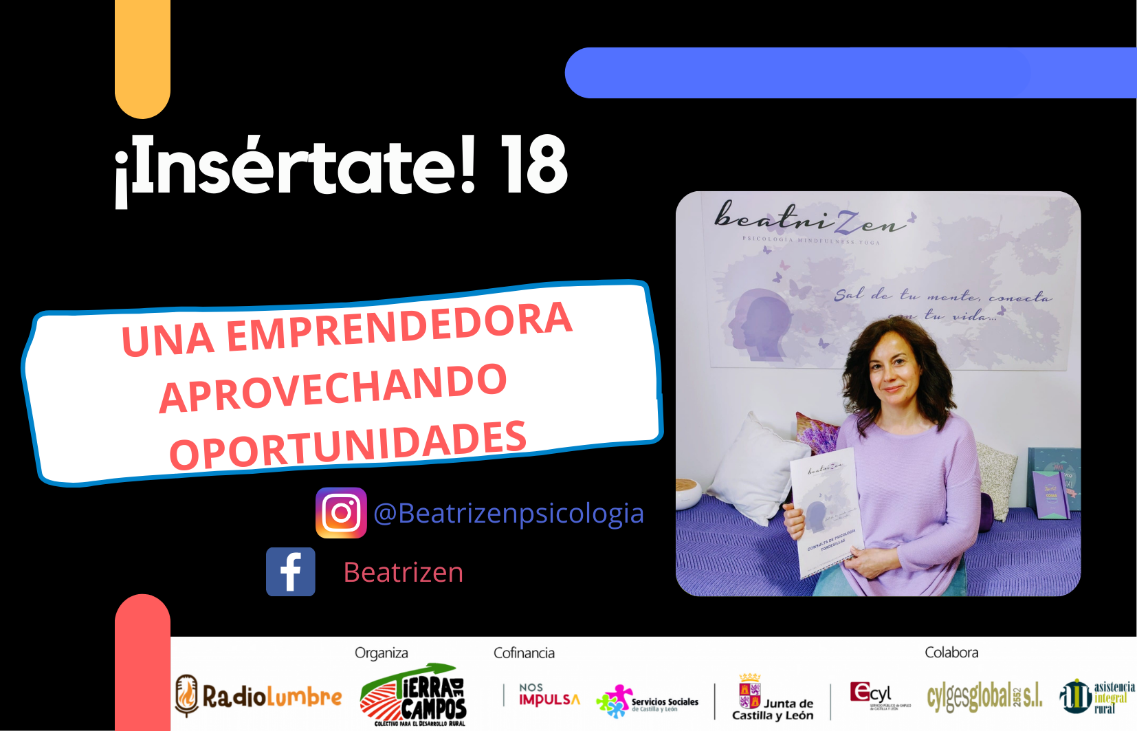 En nuestro programa de hoy hemos querido tener con nosotras a Beatriz, que tras muchos pasos pequeños pasos y formación ha creado BEATRIZEN, un espacio de salud y crecimiento personal abierto a diversos campos como la psicología, el yoga, la atención plena o Mindfulnnes. En definitiva Beatriz pretende crear un lugar abierto de encuentro y de unión, una ayuda para aumentar la consciencia del momento presente y la flexibilidad psicológica.