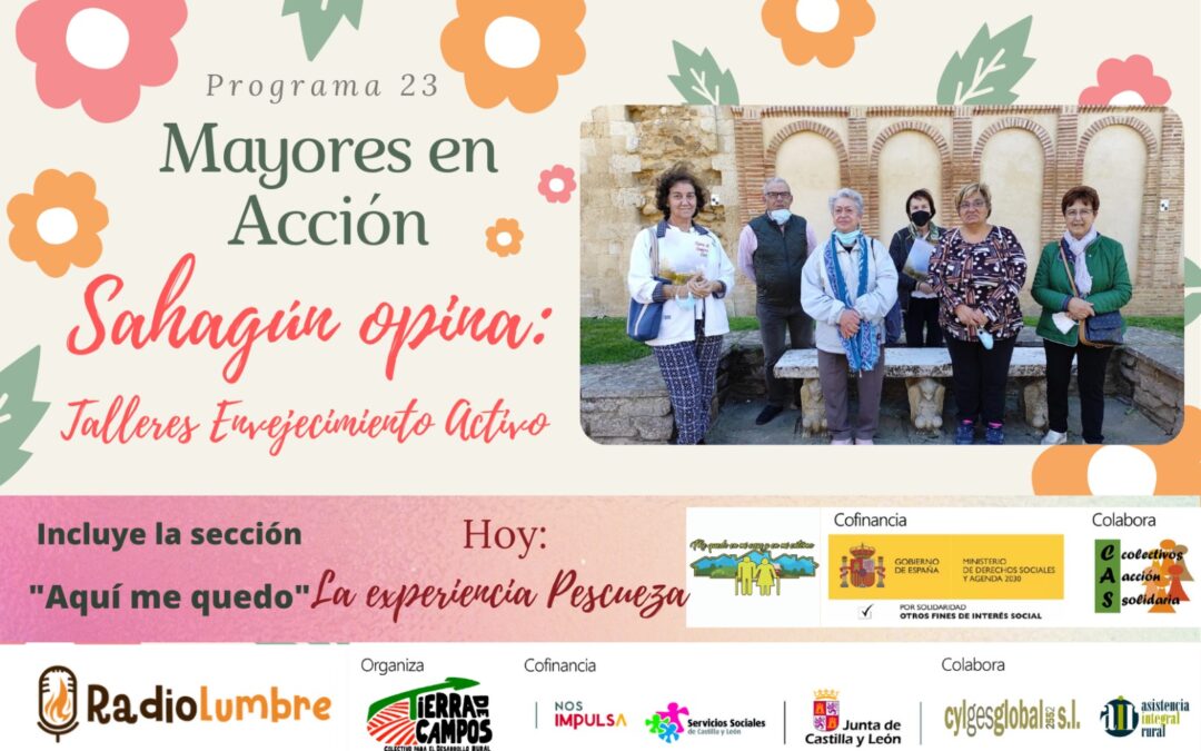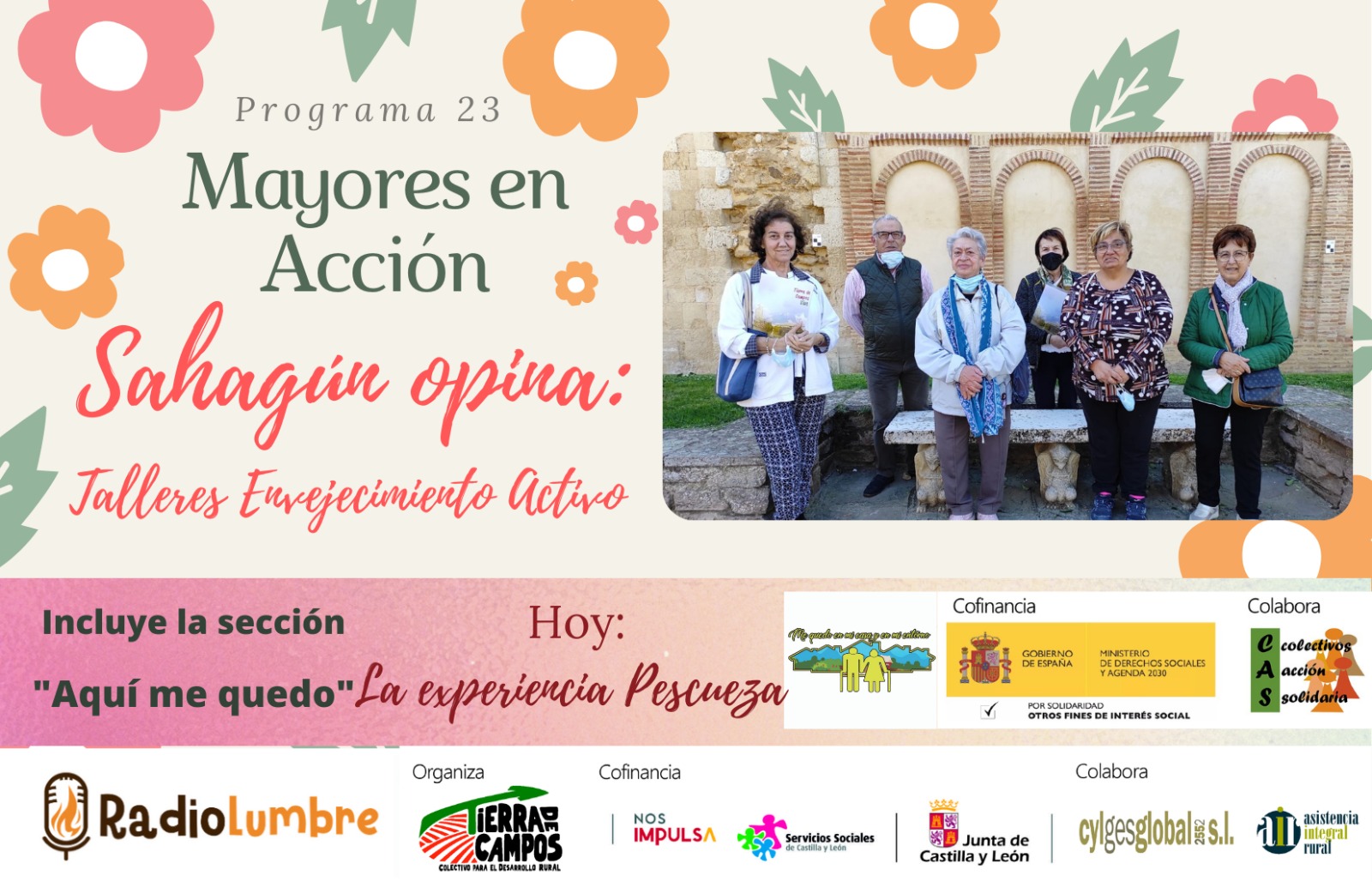 Al inicio de este programa escuchareis algunos de los trabajos realizados por las personas que han participado en el taller de escritura creativa de Sahagún que recientemente se ha desarrollado de mano del Colectivo para el Desarrollo Rural de Tierra de Campos. Este y otros muchos talleres (TIC, Música, Psicología Positiva o Radio), pertenecen al programa de Envejecimiento Activo que nuestro colectivo pone en marcha en el medio rural de Castilla y León. En el programa de hoy intentaremos explicar que beneficios conlleva el participar en estos talleres, que les ha aportado, lo mejor de estas experiencias.