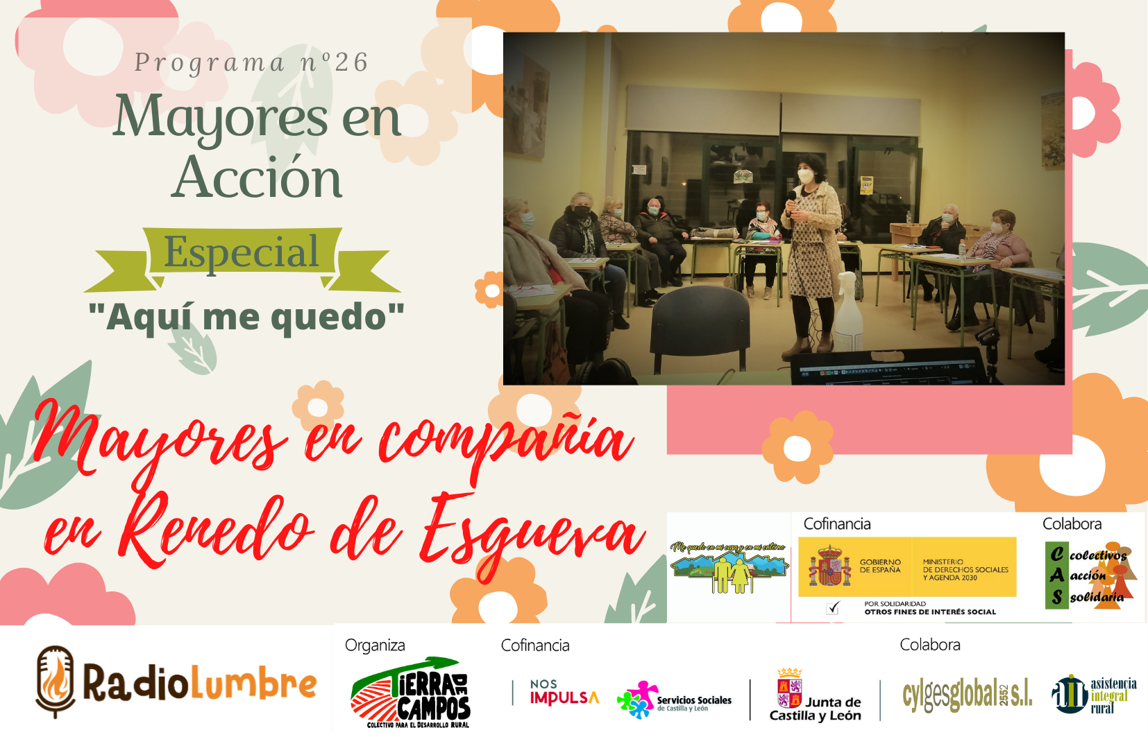¡¡Cómo nos mola trabajar con personas mayores!! A lo largo de todo este año hemos compartido mucho con todas ellas. Ahora queremos cerrar esta temporada de Mayores en Acción, dedicándoles un programa donde todos y todas ellas sean realmente protagonistas y nos cuenten lo que quieran, sus alegrías, sus penas, nos canten y nos hagan reír… Desde Renedo de Esgueva un pueblo de Valladolid, os dejamos con un programa especial de radio. ¡¡Vamos a disfrutarlo!!