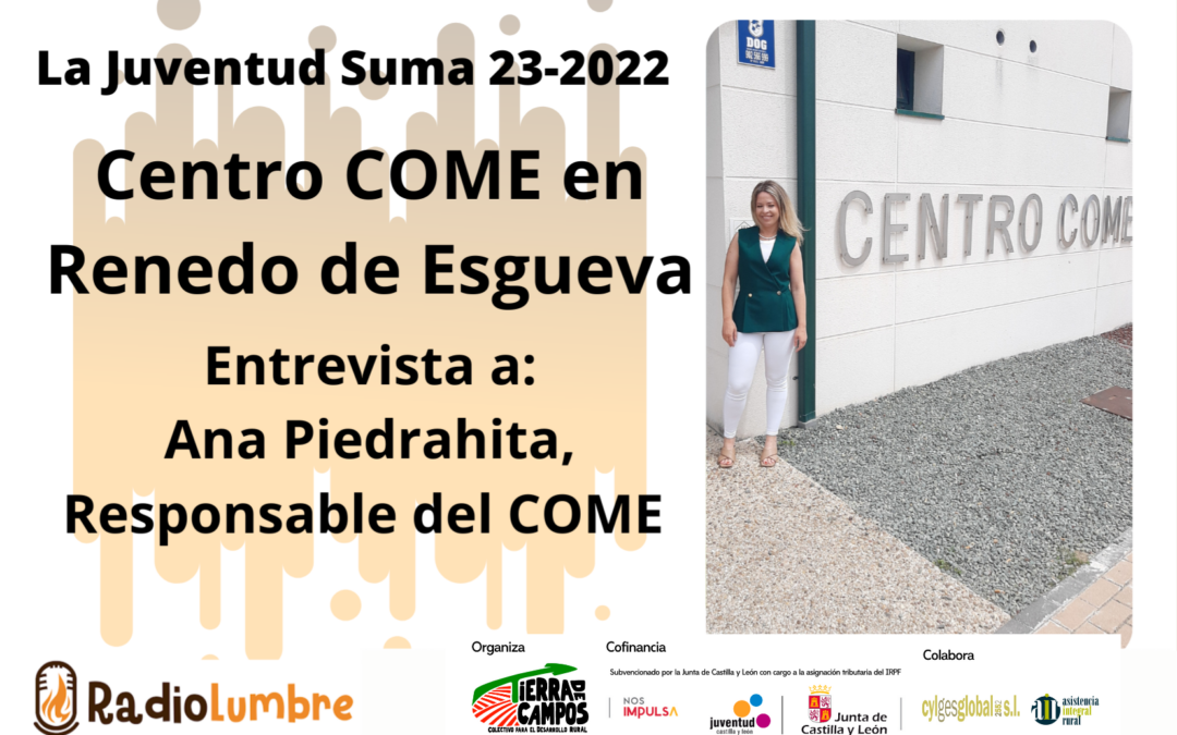 Allí nos recibe Ana Piedrahita, vecina de la localidad y, a pesar de su juventud, responsable desde hace varios años de este centro. Será ella misma quien nos presente el COME y sus actividades para jóvenes…, así como su visión de la juventud y el medio rural. Así que, si queréis conocer a Ana y al COME de Renedo de Esgueva, ¡escuchadnos!