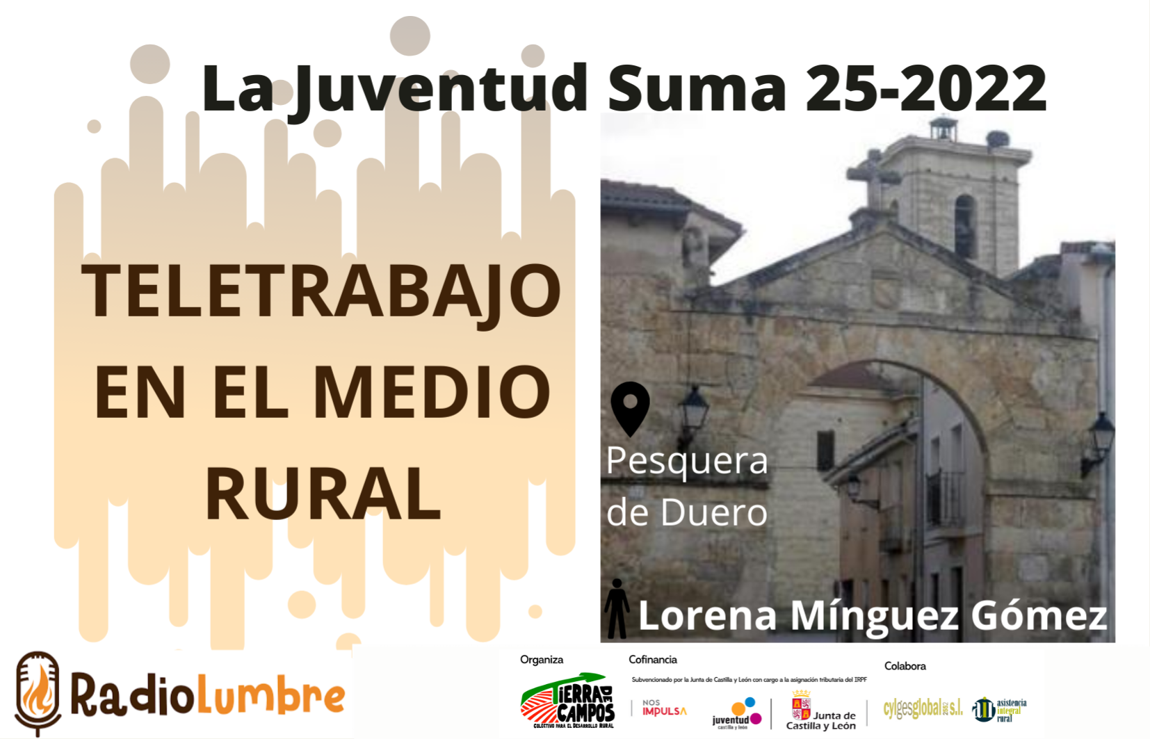 En nuestro programa de hoy nos hemos trasladado hasta Pesquera de Duero (Valladolid) para conocer a Lorena Mínguez, una joven trabajadora social que se ha venido al pueblo. Hace unos meses le ofrecieron poder trabajar sin moverse de su casa y hoy nos va a contar cómo es teletrabajar en el medio rural.