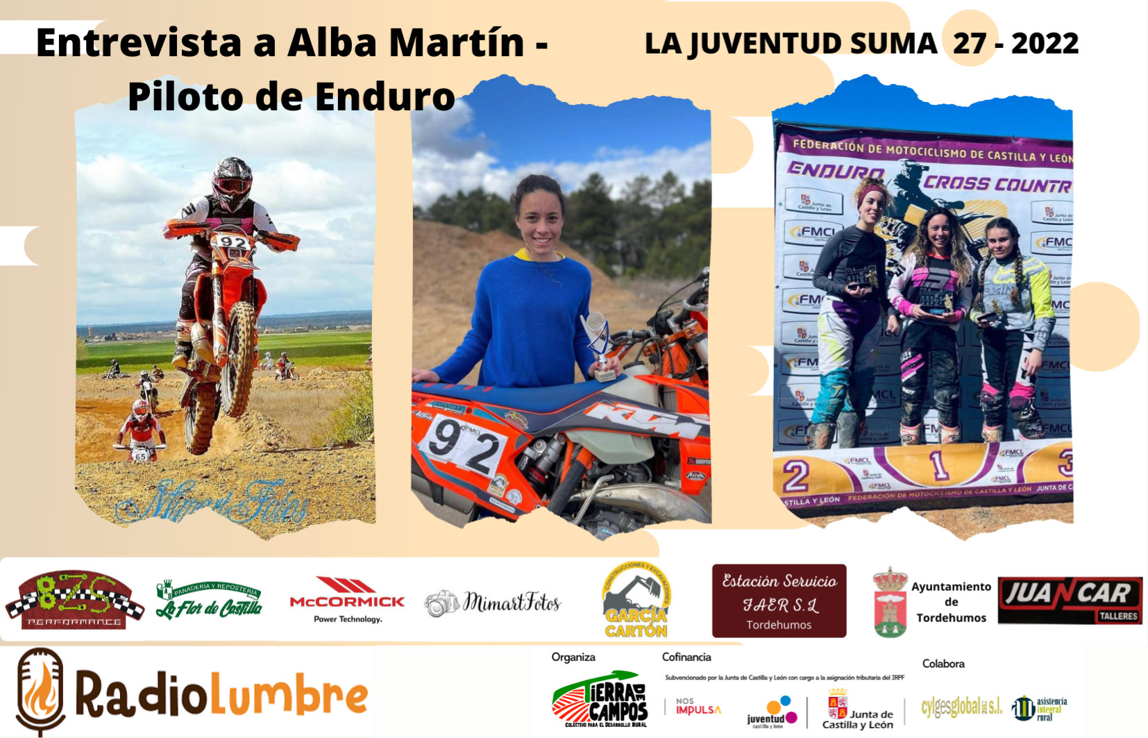 Hoy seguimos entrevistando a Alba Martín que con tan solo 23 años, es nada más y nada menos que Piloto de competición de Enduro y Cross Country, además de entrenar también en Motocross y Trial. No le hace ascos a nada que tenga que ver con las motos.