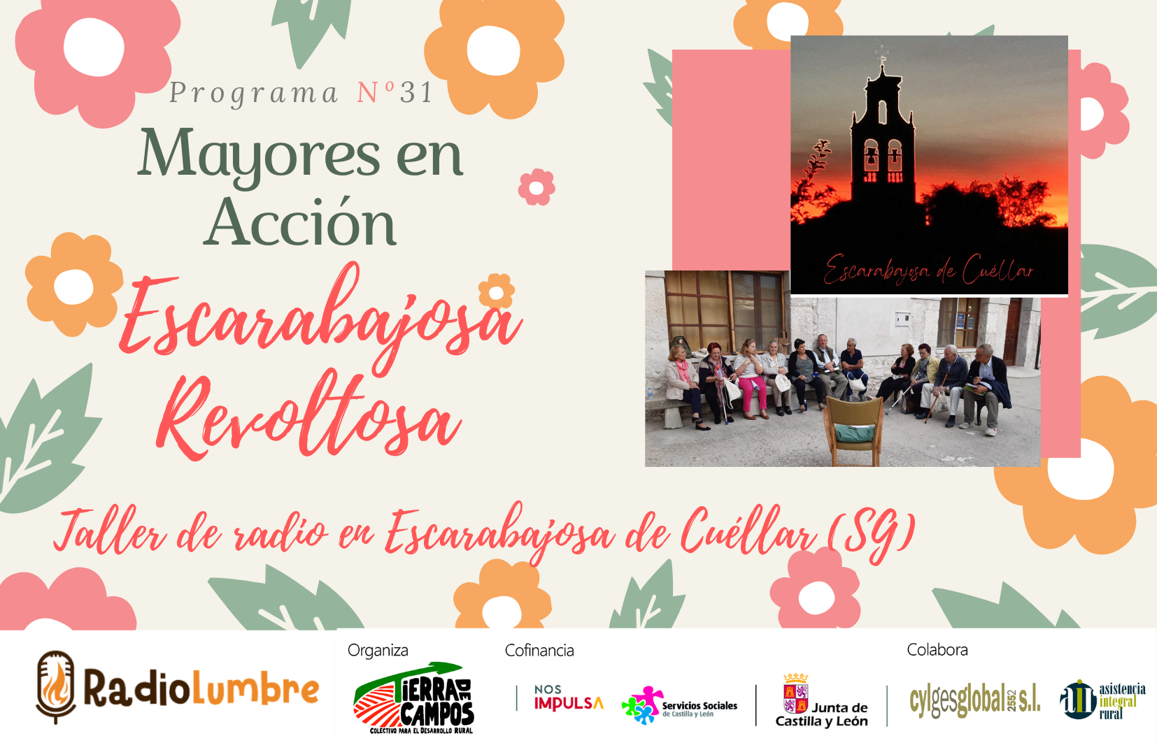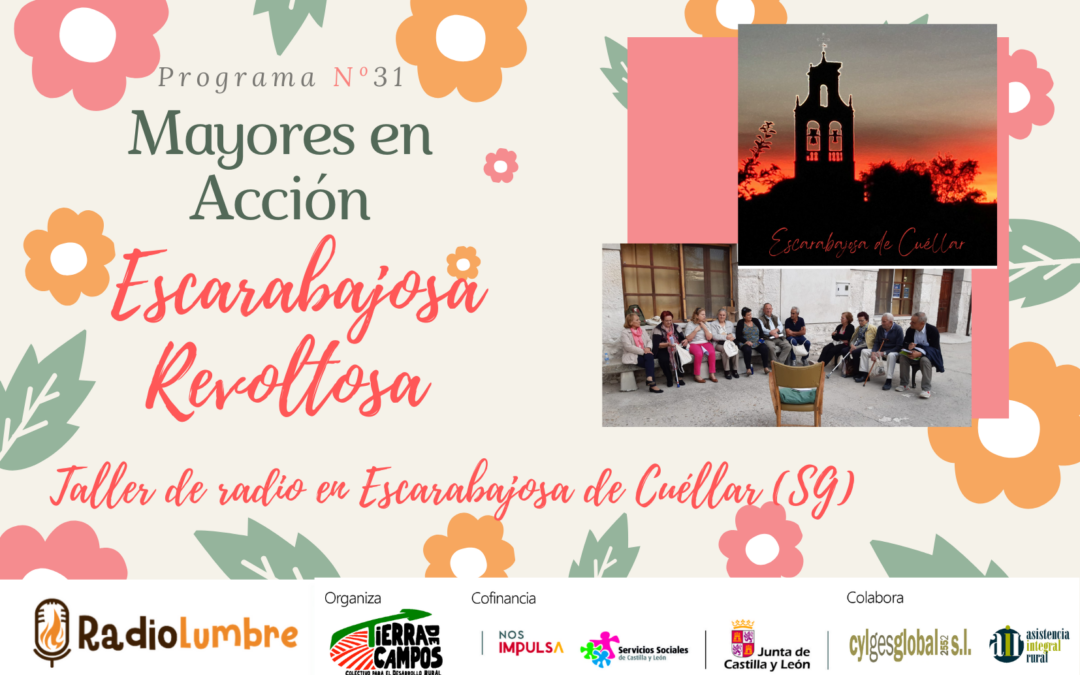 Volvemos a Escarabajosa de Cuéllar, en el corazón de Tierra de Pinares. Repetimos taller de radio con este grupo tan participativo y reivindicativo. En este programa, además de compartir saberes y sentires queremos hacer visibles las realidades de nuestro entorno que más nos preocupan