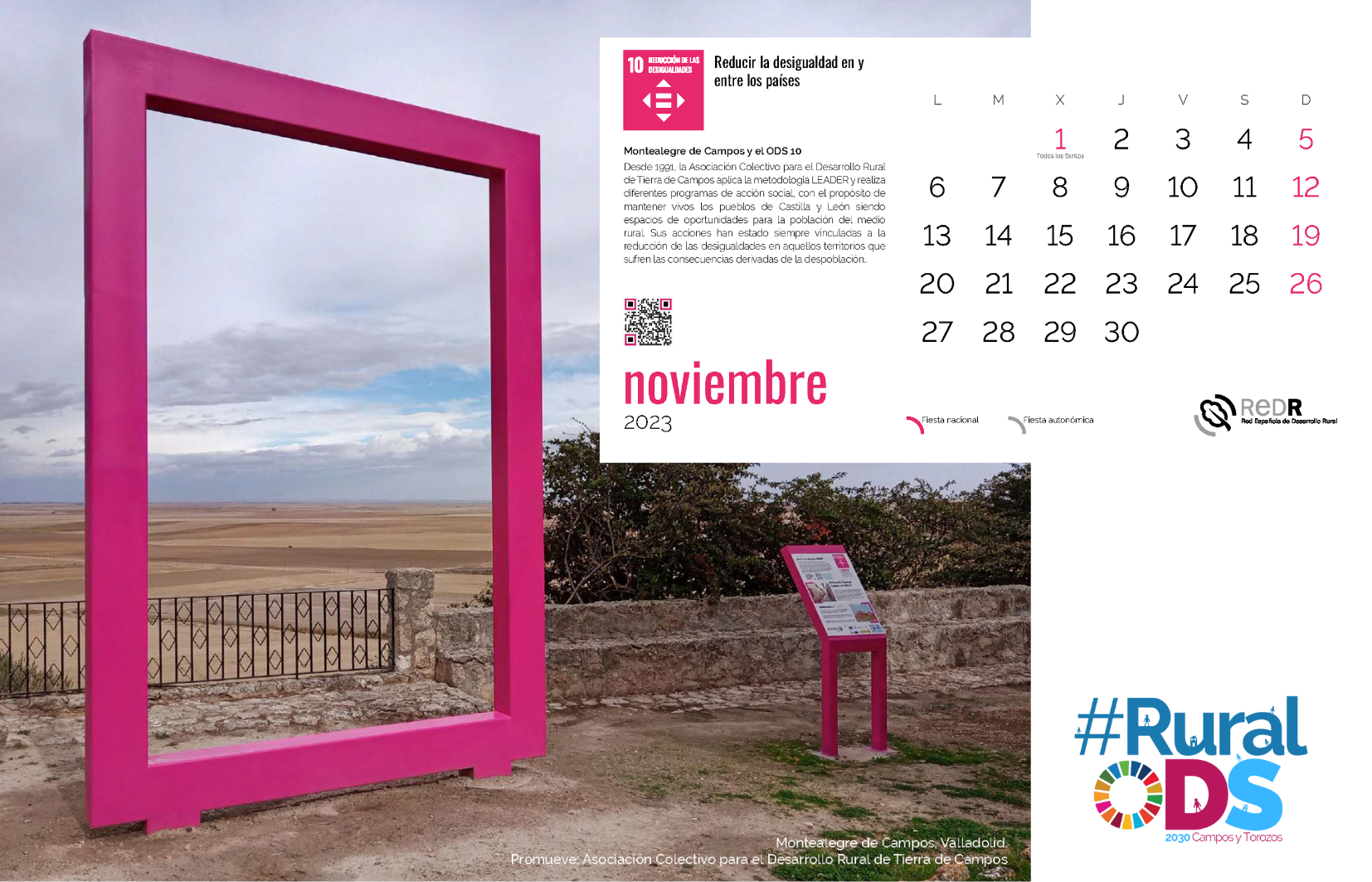 La Red Española de Desarrollo Rural (REDR) lanza su calendario 2023, protagonizado por el proyecto ‘REDR Marcos ODS’, en el que participa nuestra asociación. A través de sus fotos se hace un recorrido por los territorios donde se han ubicado las estructuras de grandes dimensiones que simulan un marco fotográfico.