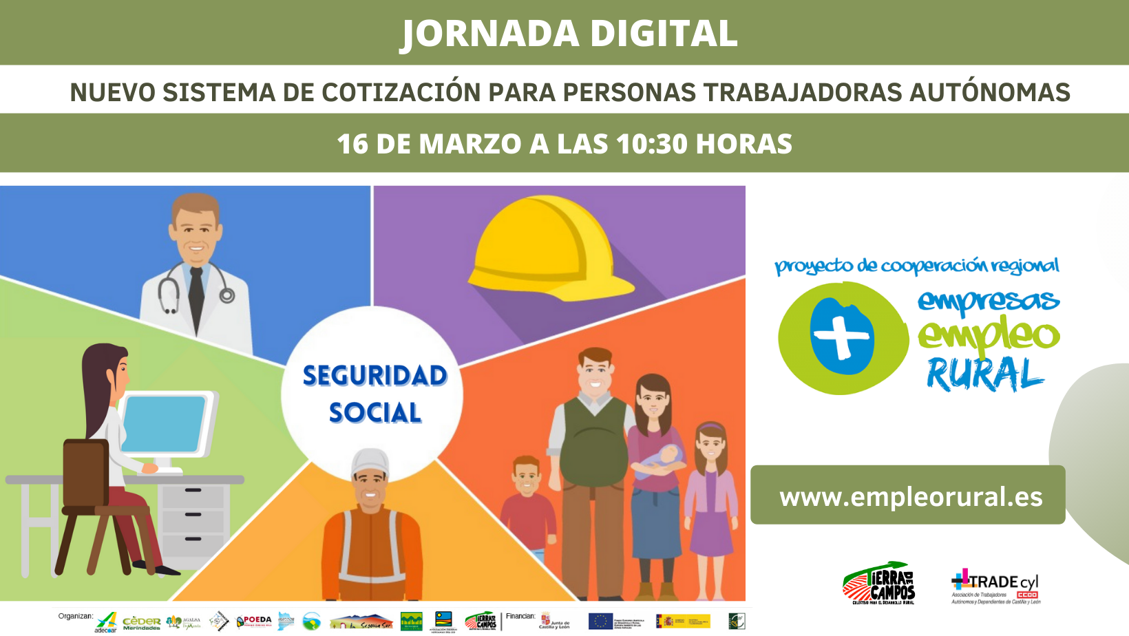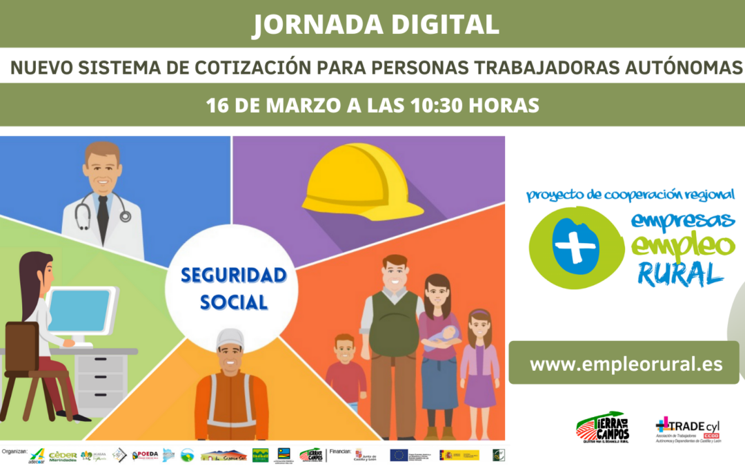 La Asociación Colectivo para el Desarrollo Rural de Tierra de Campos, en el marco del proyecto de cooperación regional LEADER ´+EMPRESAS +EMPLEO +RURAL´ en colaboración con TRADECYL, la asociación de trabajadores autónomos y dependientes de Castilla y León, hemos organizado una JORNADA DIGITAL informativa sobre el nuevo sistema de cotización para personas trabajadoras autónomas.