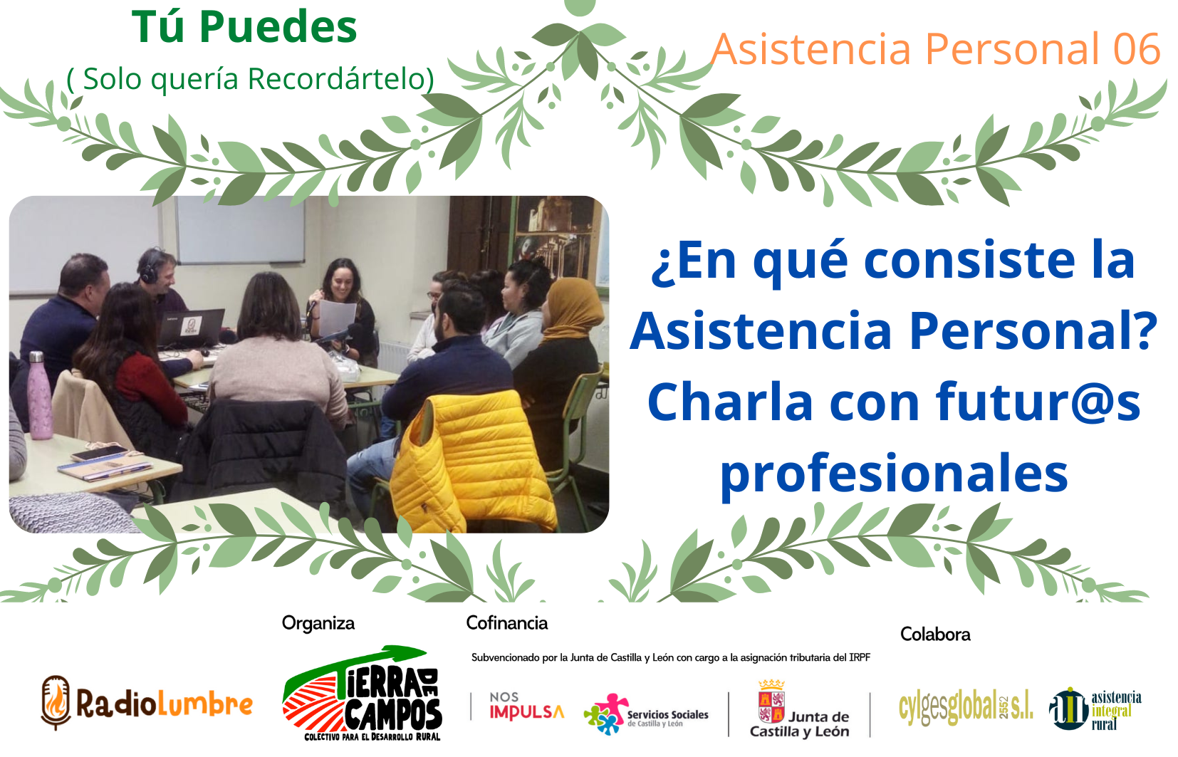 En este programa, las personas participantes del Itinerario de Inserción Sociolaboral, que el Colectivo Tierra de Campos está realizando en Tudela de Duero (Valladolid), nos cuentan cómo está siendo su formación en Asistencia Personal, en qué consiste esta figura profesional y por qué es tan importante en el medio rural.