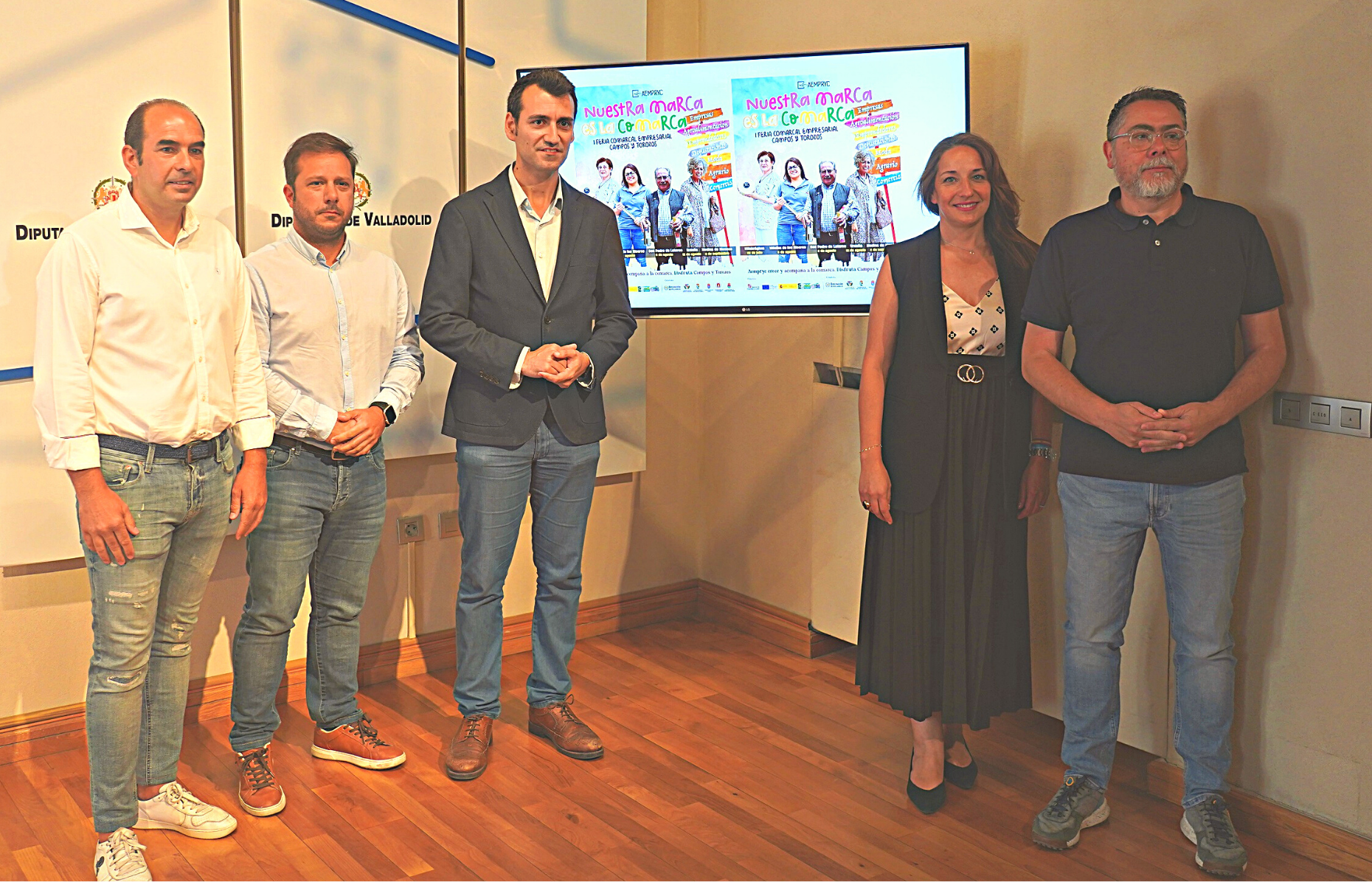 El diputado provincial de Innovación Digital, Gobierno Abierto y Contratación y alcalde de Medina de Rioseco, David Esteban, el presidente de Aempryc, Francisco de la Iglesia, el gerente del Grupo de Acción Local Campos y Torozos, Javier Paniagua, y el gerente de Aempryc, Mario Navarro, han presentado la I Feria Comarcal Empresarial Campos y Torozos que va a celebrarse de manera itinerante en 5 localidades de la comarca a partir del próximo sábado 29 de julio.