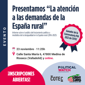Durante al acto se lanzará la página web Las demandas de la España rural, que resume algunas de las conclusiones del proyecto, seleccionado entre más de un millar de iniciativas en la Convocatoria PIA 2022 de Cotec.