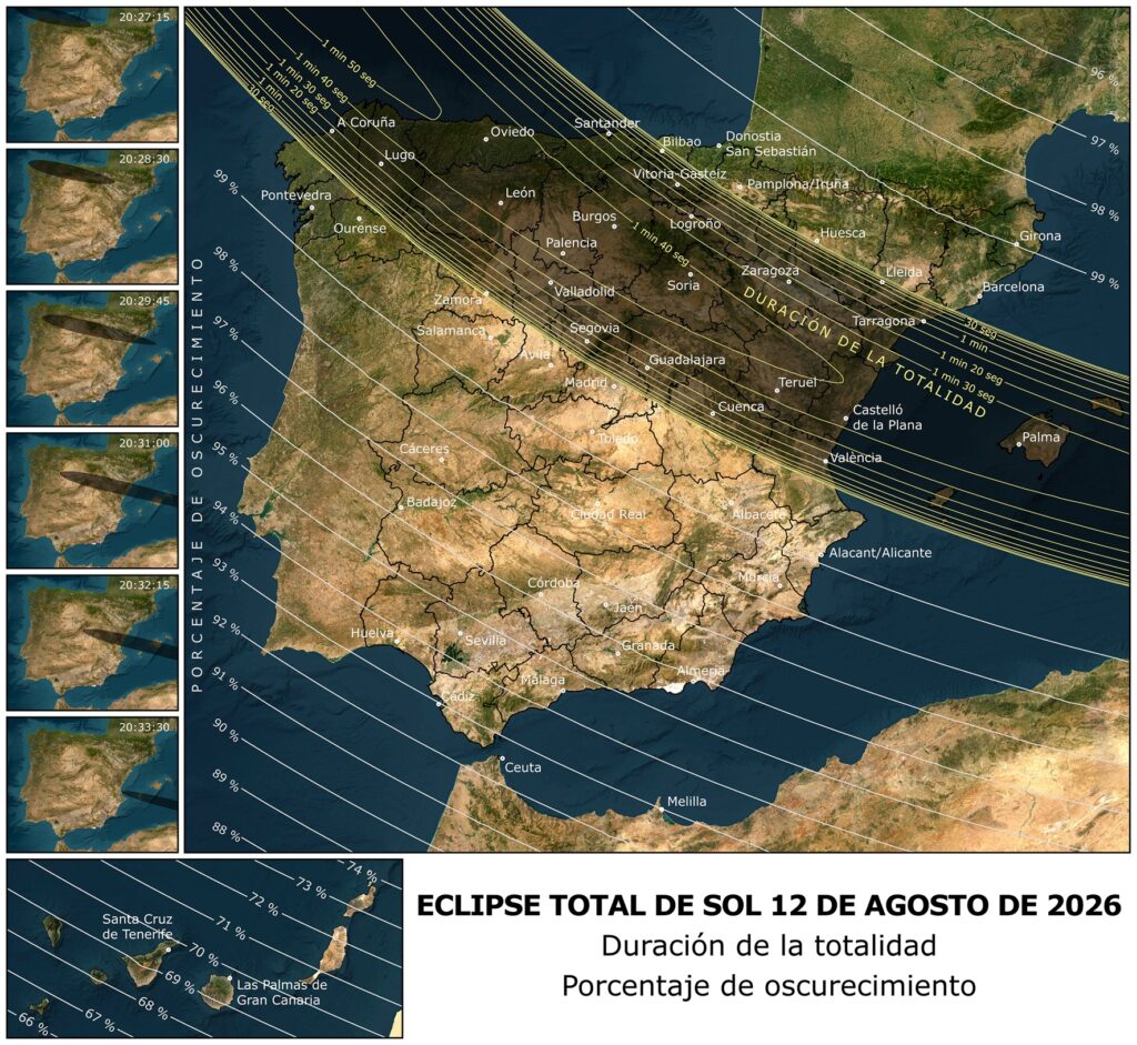 Se recomienda situarse en puntos elevados y con el horizonte despejado para asegurar la visibilidad hasta el último momento antes de la totalidad, que tendrá lugar al atardecer. La combinación del paisaje castellano con la penumbra momentánea del eclipse promete imágenes únicas que atraerán a aficionados y visitantes de distintos puntos del país.