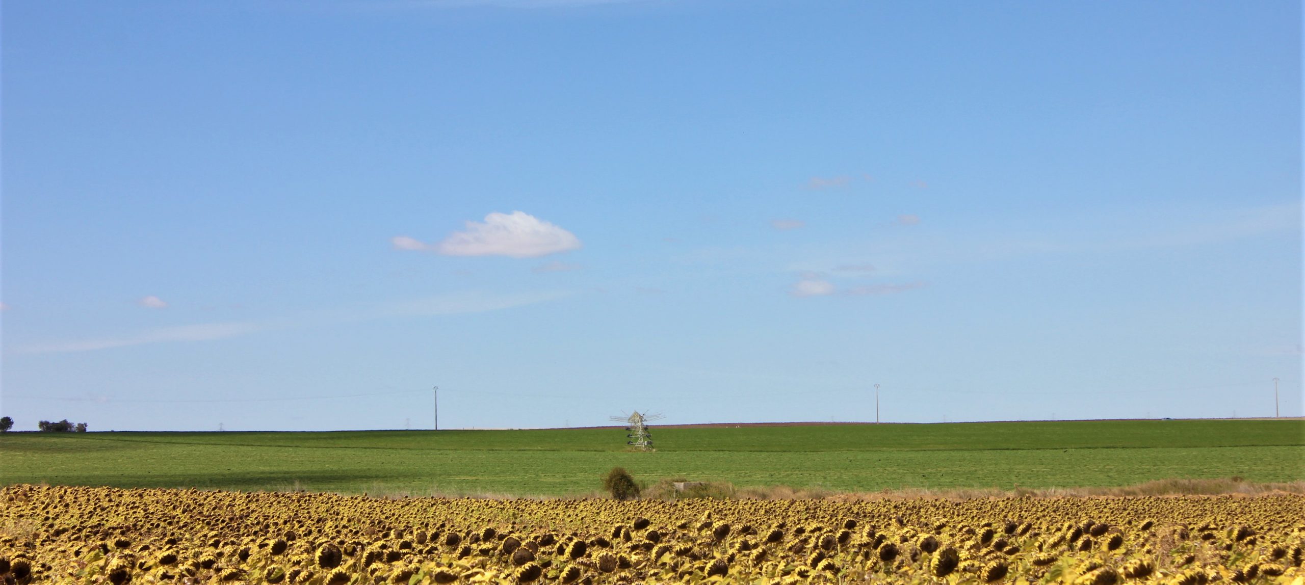 En Rioseco se toma la VA-913 y ya tenemos prácticamente una gran recta con algún sube-baja hasta Belmonte de Campos. Podemos disfrutar del paisaje ondulado y los campos violetas de la alfalfa en flor. Antes de Belmonte pasaremos por Villanueva de San Mancio donde seguro que nos sorprenderá la torre de su iglesia, de forma octogonal. Entre Villanueva y Belmonte pasamos a la provincia de Palencia y seguimos por la P-913. Continuamos por una tremenda recta de 13,5 Km que llega hasta Villarramiel, aunque por el medio atravesaremos Castil de Vela tras pasar por encima del Canal de Castilla en su ramal de Campos.